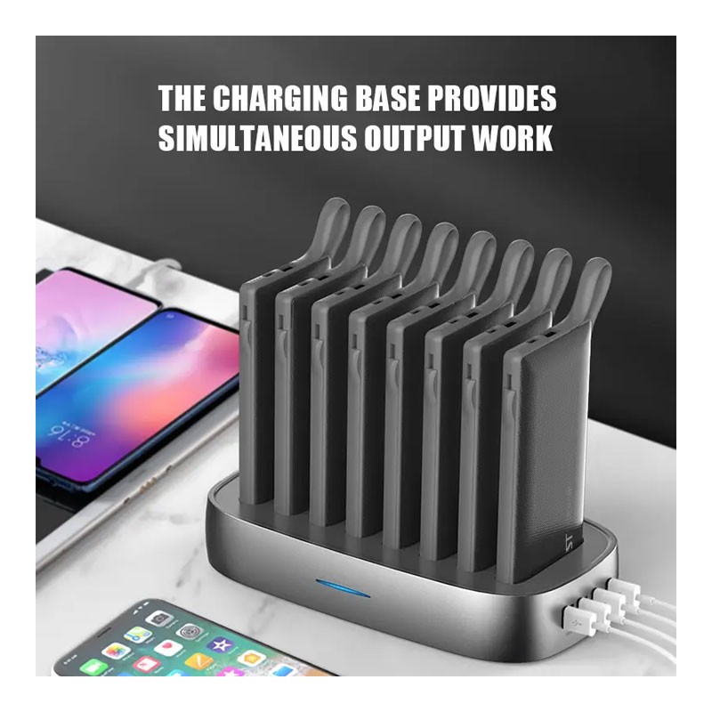 WST Multiple Device Connection, 10000mAh X 8 Power Bank Docking Station With Built In Cable